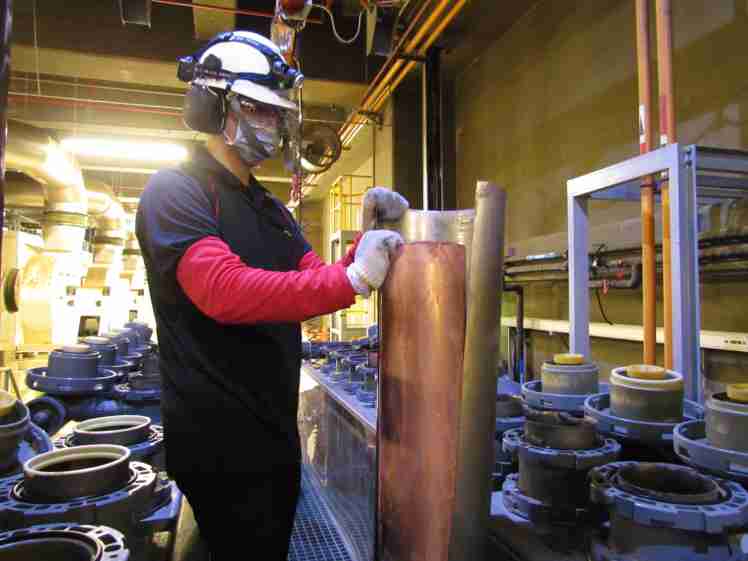 Wepay将废弃物转化成有效的工业或民生原物料,,,,图为废铜液淬炼后再制成纯度极高的铜管