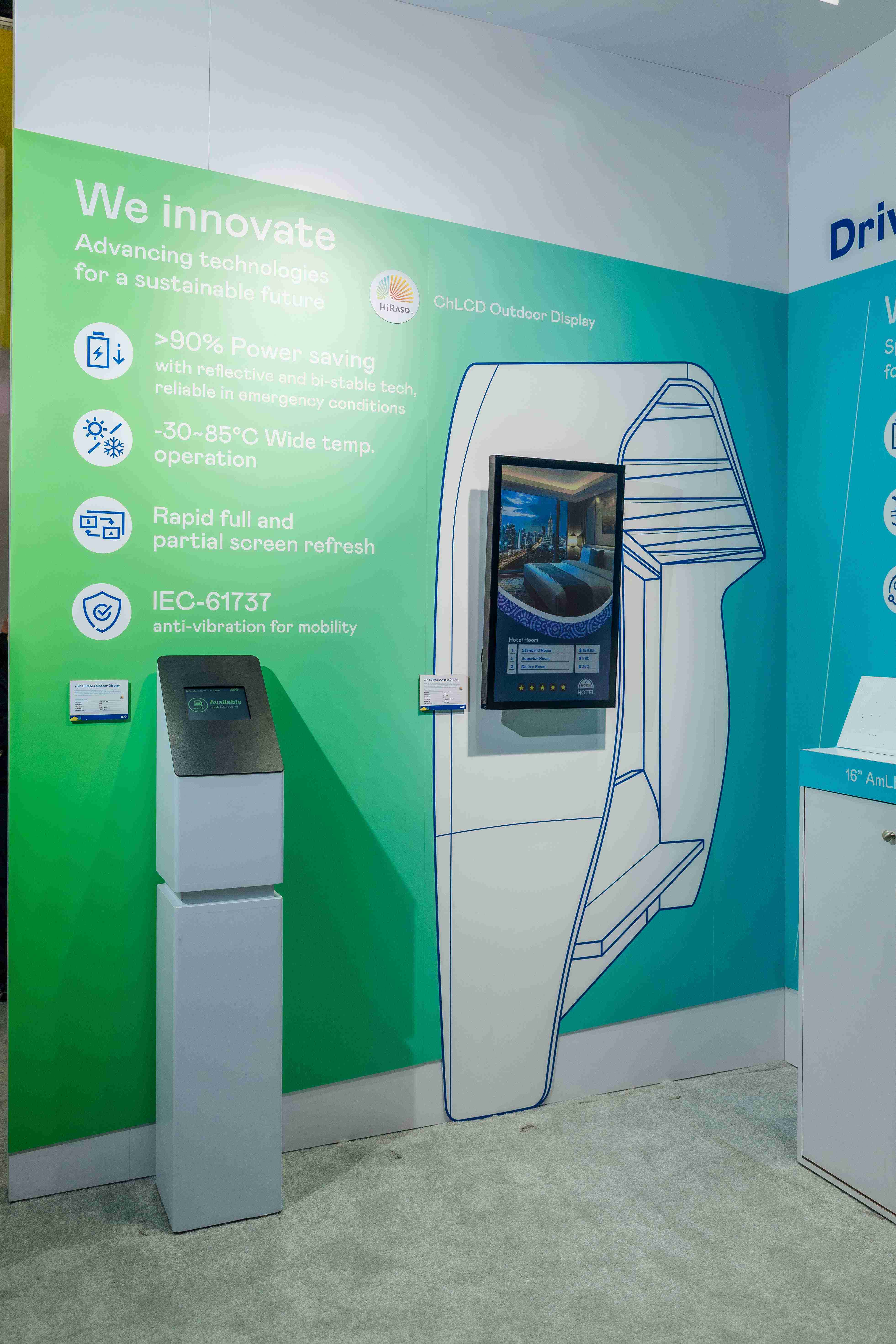 HiRaso胆固醇液晶显示器运用反射环境光线的方式,,呈现影像显示时零耗能的环保省电诉求,,,光线愈强愈能呈现绝佳的色彩饱和度及显示效果,,同时在摄氏-30度至85度间宽温的使用优势,,,,为户外电子看板的新首选。。。。