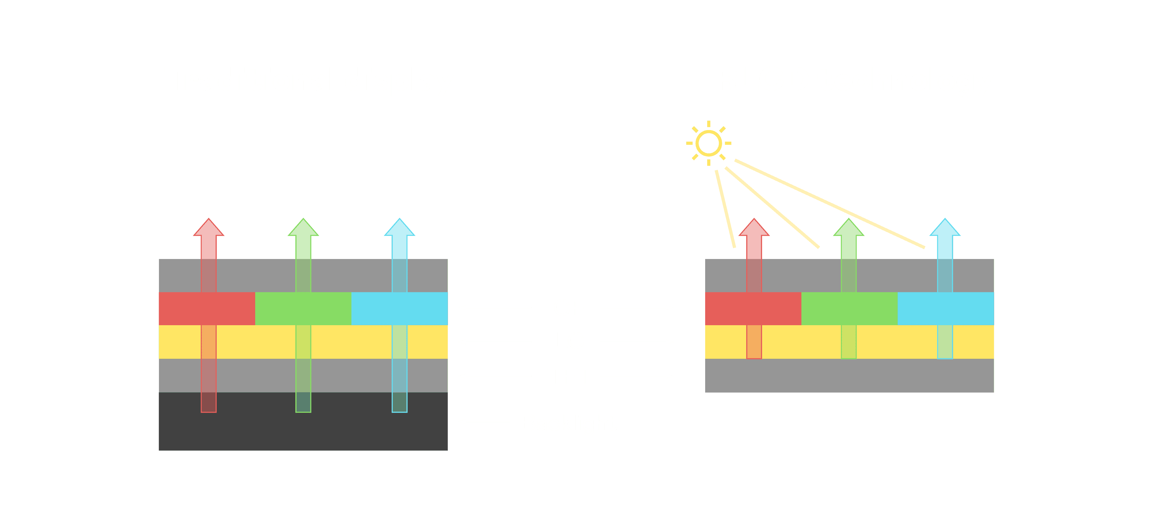 与传统需搭配背光单元的液晶显示相比,,,,反射式液晶技术不仅更省电、、更轻薄,,,,且即便在艳阳下仍能清晰显示。。。此外,,,,少了背光单元,,也大幅降低了 LED 蓝光伤害眼睛的疑虑。。。。